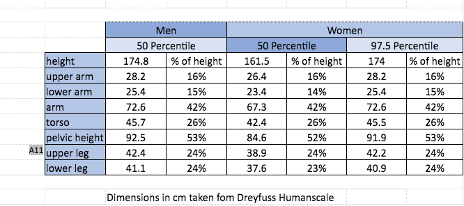 Numbers collected in the NASA anthropometric summary tell the same story, as do those produced by the USA Military database, based on 132 body measurements on around 4000 individuals.
