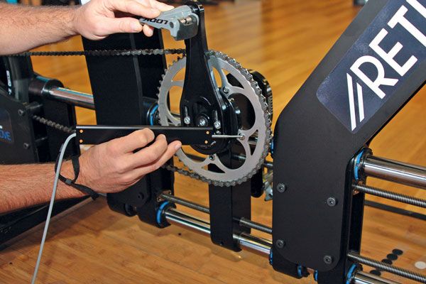 "The serious racers are usually good at getting the right reach, handlebar width, and handlebar height, but they tend to have their saddle a little bit low. When we set up saddle-to-pedal height, we're looking for an angle of 30° at the knee and we generally see around 40° with club cyclists," Sowerby says.